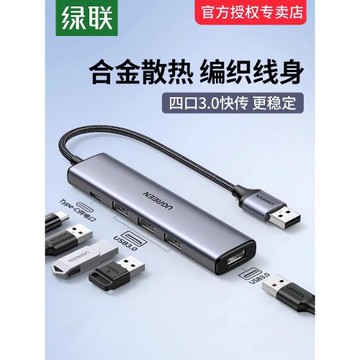 綠聯usb擴展器集分線器插頭多口typec延長hub3.0外接轉接u盤帶供電轉換筆記本電腦平板臺式usp多接口拓展塢