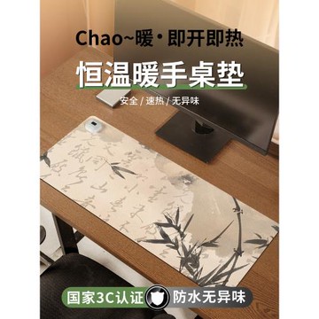 國風加熱鼠標墊超大號桌面加熱墊辦公室女生高顏值發熱暖桌墊筆記本電腦墊加熱電熱桌墊暖手寫字游戲鍵盤墊子