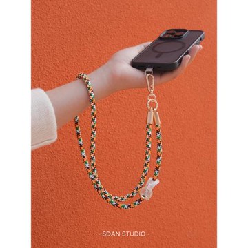 SDAN多功能7mm新春橙色款手機掛繩掛脖編織手腕繩短款防丟[是旦