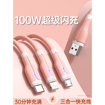 數據線三合一充電線一拖三快充100W快充6A閃充5A車載