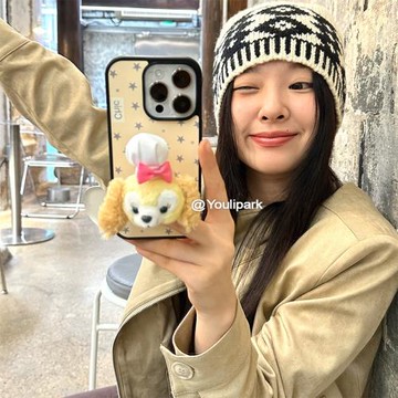 由里公園ins可愛少女奶黃星星毛絨卡通支架15適用16pro蘋果16ProMax手機殼iPhone16全包14新款14Promax保護套