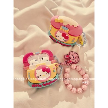趣味可愛貓咪電話機適用于蘋果Airpods4保護套2/3代無線藍牙耳機軟殼Airpods pro卡通創意硅膠女新款防摔軟