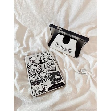 卡通漫畫甜品KT貓適用iPadmini7保護殼360旋轉支架iPad Air6帶筆槽11英寸10.2新款2024ipadPro13平板套10.9寸