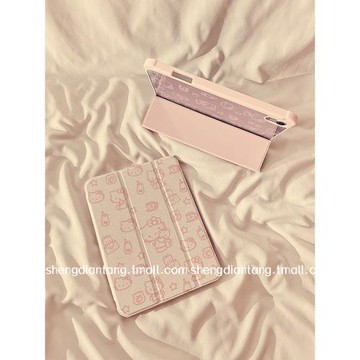 點我下載少女線條貓咪三折iPad10保護套2024新款適用蘋果iPad10.2寸mini6平板Air4/5透明保護殼pro防彎女軟9.7帶筆槽