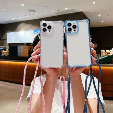四角開孔適用蘋果15斜挎16手機殼14promax透明iPhone13帶掛繩12pro氣囊防摔11pm可調節背帶xr掛脖7plus硅膠女