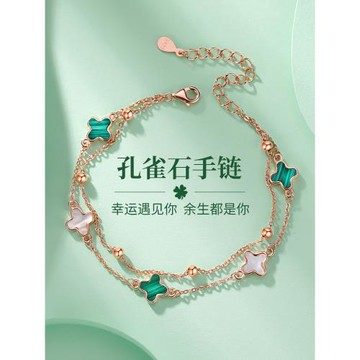 (免運)孔雀石四葉草銀手鏈女生款純銀手飾輕奢小眾精致生日禮物送女朋友