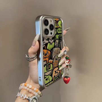 奶油鏡面油畫蝴蝶適用蘋果17promax手機殼彩繪帶手鏈16pro卡通個性15高級感14軟殼新女款12創意17pro保護套