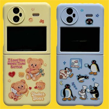 ins法式復古卡通奶黃油小熊適用于VIVOXFLIP手機殼創意新款XFlip小折疊屏外殼vivoxflip防摔保護套手鏈女款