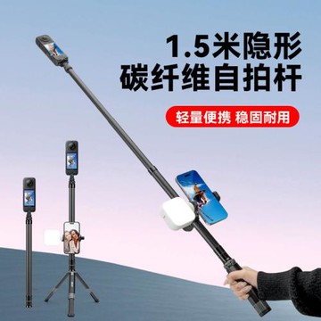 點我下載1.5米碳纖維全景相機Insta360X4隱形自拍桿X3手持支架適用影石360X2運動相機延長桿vlog拍照錄像落地三腳架