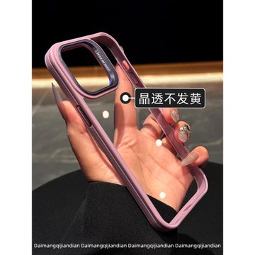呆芒金屬鏡框-新款櫻花紫邊iphone15pro手機殼適用蘋果14proMax簡約透明撞色13高級感12全包防摔保護套男女16