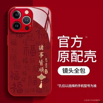適用蘋果16promax手機殼新年紅色iphone15新款14全包諸事皆順12pro本命年玻璃11過年por蛇年13款女iphone15套