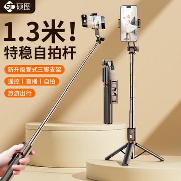 碩圖自拍桿三腳架手持防抖自拍神器360度旋轉全自動多功能手機支