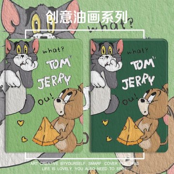 卡通油畫萌2021/20/19新款ipad適用air4/3/2旋轉保護套10.2/9.7寸平板2018帶筆槽pro11三折mini4/5蘋果123殼6