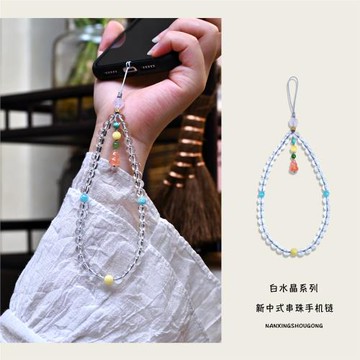南星手工原創新中式白水晶串珠手機鏈古風高檔多寶手機掛繩掛件