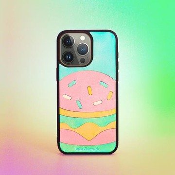 兩針一線原創漢堡甜甜圈適用蘋果16promax新款手機殼背夾情侶高級感iphone15promax真皮掛繩斜挎14pro保護套