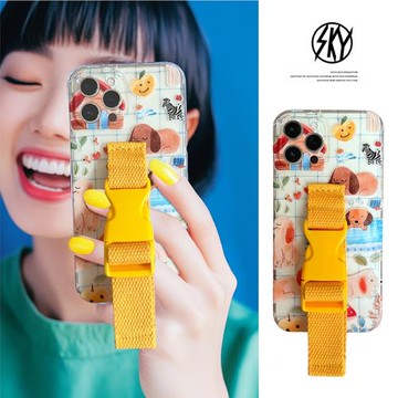 可愛瞌睡狗動漫蘋果16Promax腕帶手機殼適用iphone15Pro高品質14半透明13同色扣12斜挎11明星同款16P萌寵15P