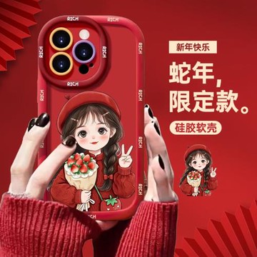 酷圖適用蘋果15新年款手機殼14plus保護套紅色13硅膠16promax草莓女孩11蛇年喜慶16pro高級感小眾iphone12女X
