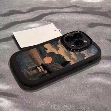 落日風光適用蘋果16手機殼新款彩繪iPhone16promax膚感泡芙15個性創意14小眾高級13全包防摔硅膠16pro保護套