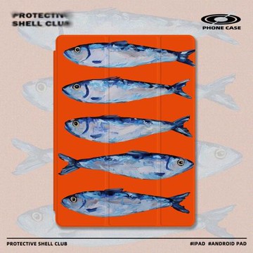 日式繪畫小魚簡約藝術小眾潮流藝術適用于蘋果iPadPro2022/11/12.9/air5防摔三折氣囊保護殼書本款matepad11