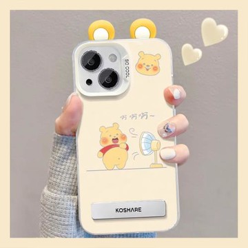 適用蘋果17promax手機殼可愛維尼熊耳朵iphone16pro卡通彩繪新款15PM帶支架14情侶男女款13磨砂176防摔保護套