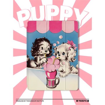 vintage粉可愛童趣小狗復古潮流藝術潮適用于蘋果2022款iPadPro12.9/11三折保護殼air5/mini6防摔氣囊平板殼