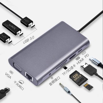 聯想Thinkpad Type-C擴展塢 USB-C轉HDMI和VGA轉接頭 USB分線器 千兆網口 PD快充 SD/TF筆記本拓展塢LC10