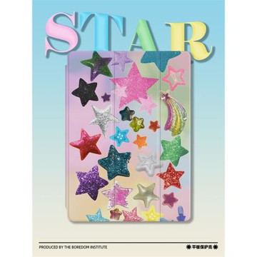 小眾復古Y2K星星潮藝術繪畫漸變多巴胺適用于蘋果2022款iPadPro12.9/11三折保護殼air5/mini6防摔氣囊平板殼