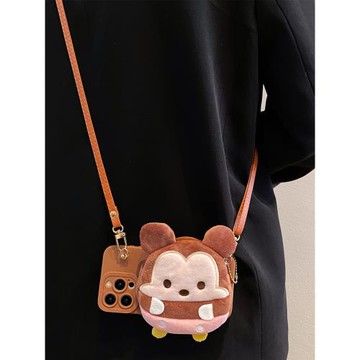 棕色毛絨米妮零錢卡包適用蘋果16promax手機殼iphone17pro斜挎13掛繩12卡通11/16pro絨布14新款15pro保護殼xs