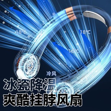 皓軒掛脖風扇便攜式隨身小型懶人掛脖耳頸無葉充電數顯5檔風扇戶外運動夜跑照亮燈廚房夏天降溫神器