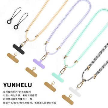 YUNHELU新款7MM可調節手機掛繩帶不銹鋼夾片戶外背帶斜挎繩可掛脖