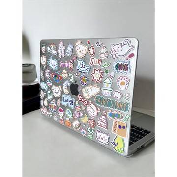 V-SION簡筆插畫透彩殼適用蘋果macbookpro保護殼2024款14寸macbook套air13筆記本mac電腦輕薄13透明保護套