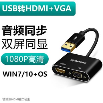 萊菁櫟USB轉VGA轉換器HDMI轉接頭投影儀高清接頭筆記本電腦三合一