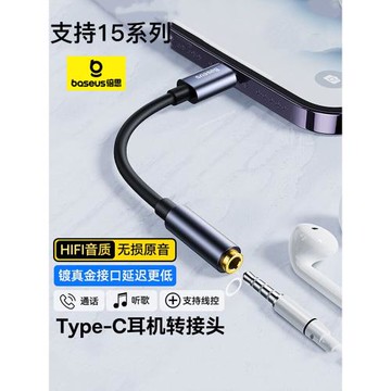 倍思type-c耳機轉接頭安卓3.5mm接口tapec轉換器線短適用iPhone15手機充電聽歌轉接線tpc圓孔U盾銀行轉賬