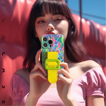 撞色腕帶16promax手機殼iphone14加厚防摔14plus花朵13斜挎支架12多功能11MAX多彩15p原創16個性13女款16PRO