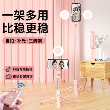 廠家直銷V01抖音藍牙自拍桿 通用拍照神器補光燈三腳架自拍桿