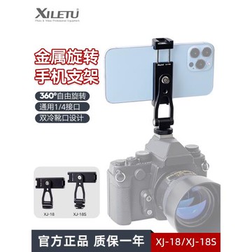 喜樂途金屬旋轉手機夾兩段式通勤支架桌面三腳架雙冷靴口云臺底座