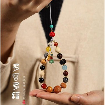 十八籽手機鏈多寶菩提手機掛繩手腕手機掛件男女中國風掛飾