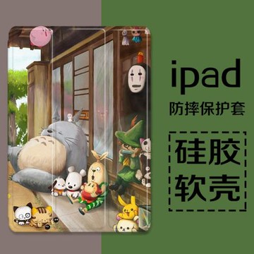 龍貓適用ipad保護套2021新款2020平板air4殼mini5適用3迷你2帶筆槽pro11寸8蘋果2018三折款19動漫宮崎駿