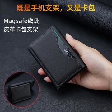 折疊皮革卡包手機支架Magsafe磁吸商務便攜底座蘋果桌面辦公追劇