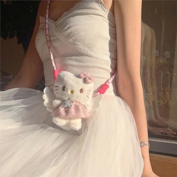 點我下載守護天使 可愛少女kitty粉裙斜跨手機背夾通用毛絨可拆卸斜挎掛繩
