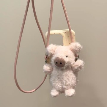 ins潦草小豬手機背夾粉色毛絨公仔斜挎殼通用可愛韓國東大門情侶閨蜜禮物防摔