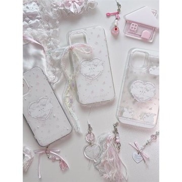 原創設計天使菟菟系列夢幻imd雙層印花珍珠手機殼亮面可愛少女蘋果15系列 15 pro 大孔保護殼 適用于蘋果
