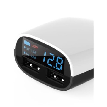 點我下載帶顯示車充 3.4A智能雙USB汽車充電器低電壓報警多口智能車充電器