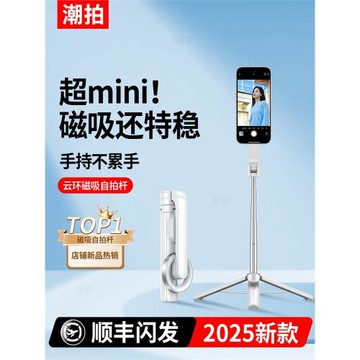 潮拍磁吸自拍桿2025新款旅游便攜MagSafe三腳架迷你手持藍牙多功能拍照神器手機拍攝支架防抖通用360°旋轉