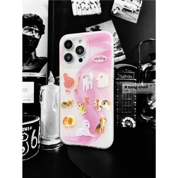 A tong shell藝術渲染粉色油畫狗iphone15手機殼16promax高級感小眾小清新女適用蘋果14保護套可愛磨砂防摔13