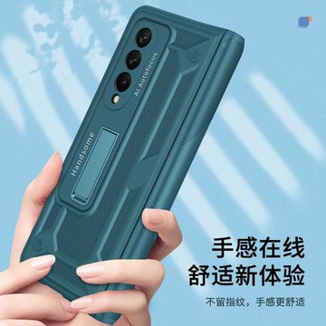 適用三星fold3手機殼碳纖維紋超薄自帶支架殼膜一體保護殼w22商務奢華精孔防摔手機套凱夫拉紋f9260中軸保護