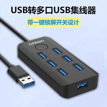 USB3.0轉多口USB集線器帶一鍵鎖屏息屏開關臺式機筆記本電腦連接U盤鼠標鍵盤硬盤HUB七合一 擴展器加長0.5米