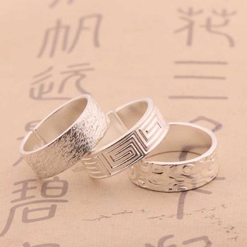 足銀9999手工男士純銀戒指亮面指環開口祥云個性時尚實心古風浮雕