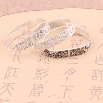 足銀9999開口純銀軌道手鐲 復古古法花開富貴牡丹女士送友配唐裝