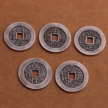 開運陶源 散裝古銅錢 順治、康熙、雍正、乾隆、嘉慶清朝皇帝五帝錢綜合 直徑約2.5cm 古銅色 36枚